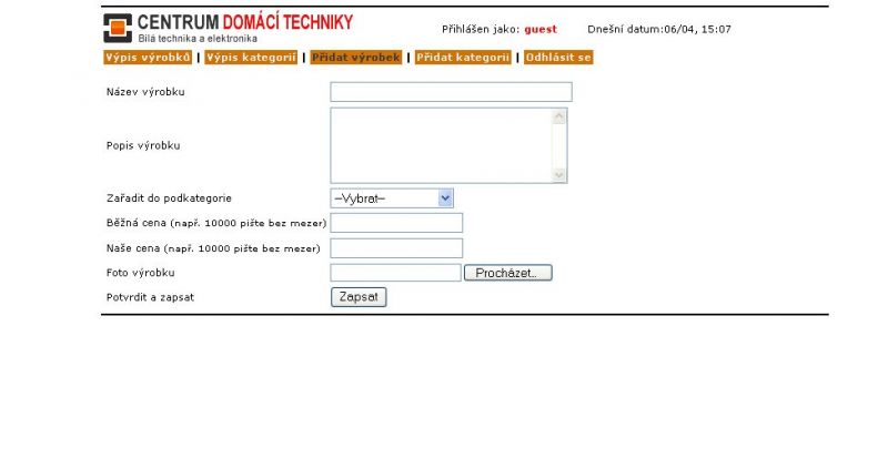 Tvorba administračního rozhraní pro katalogový výpis výrobků bílé techniky