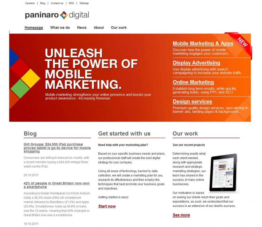 Paninaro digital se abývá se zpracováním digitálních strategií, plánováním a nákupem médií a kompletním servisem při realizaci mobilních a online kampaní při využití nejmodernějších technologií v oblasti digitálního marketingu. Byla navržena jednoduchá avšak účelná grafika, nasazen redakční systém (správa více jazykových mutací), web zoptimalizován pro vyhledávače (SEO onpage/offpage faktory). Klient velmi spokojen.