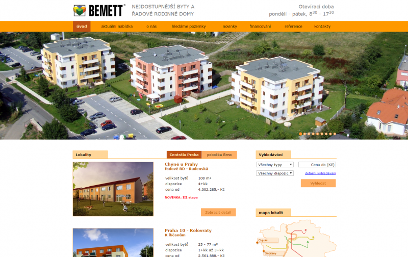 Vytvoření prezentace významného českého developera. Web splňuje trend současné doby - přehlednou grafiku (grafiku dodal klient), optimalizaci pro mobilní zařízení (responsivní design) a je spravován pomocí CMS. Systém je postaven na Nette).Ve spolupráci s firmou ANDWEB s.r.o. Mojí prací bylo kódování šablon + responsivní design, programování dynamických modulů (backend, frontend).