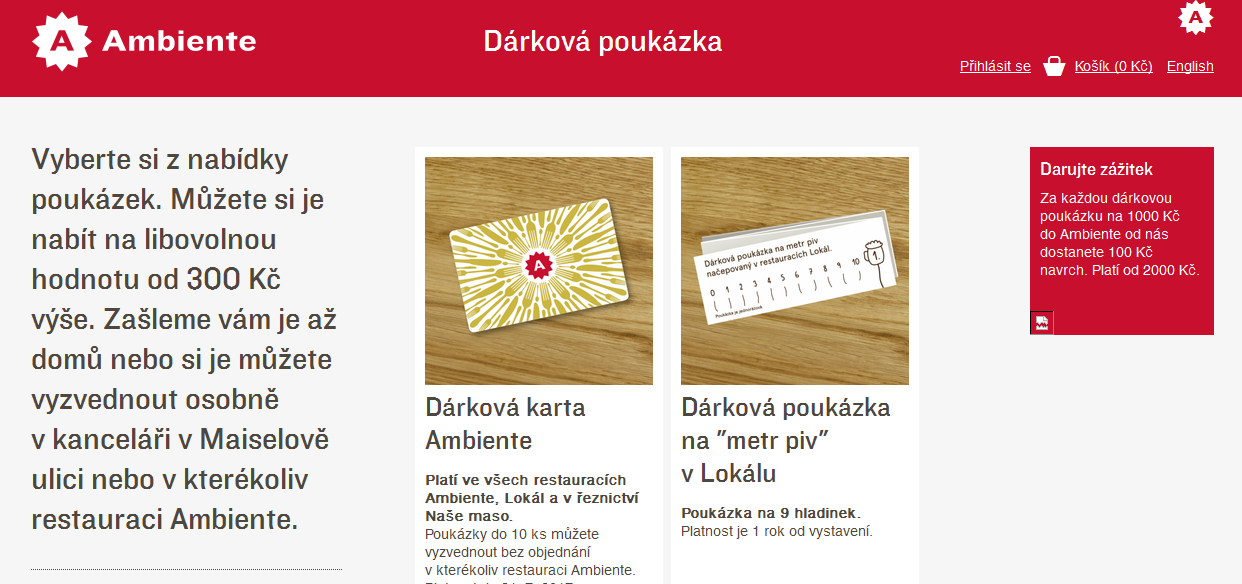 Webové stránky projektu Dárková poukázka, kterou provozuje společnost AMBI CZ, s.r.o. jsme realizovali ve spolupráci se společností Andweb, LaTaupe s.r.o. a grafickým studiem Najbrt. Mojí prací bylo vytvoření plně responzivních grafických šablon pro perfektní čitelnost na všech mobilních a desktopových zařízeních.
