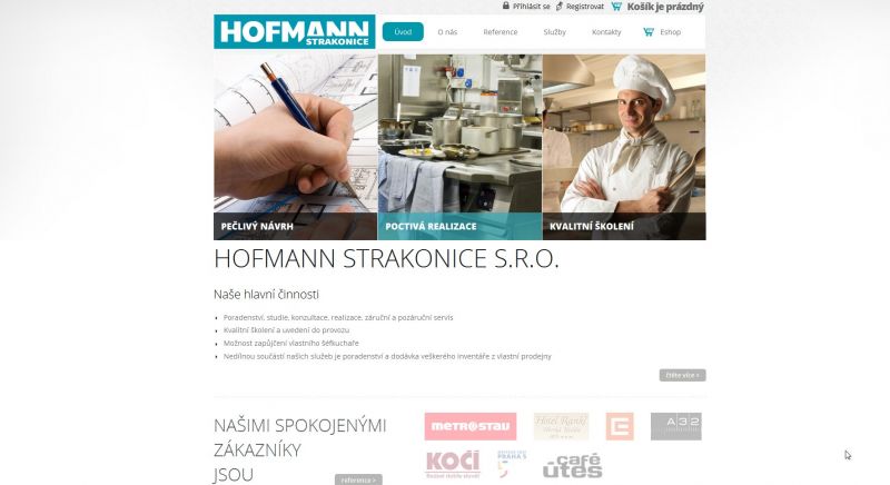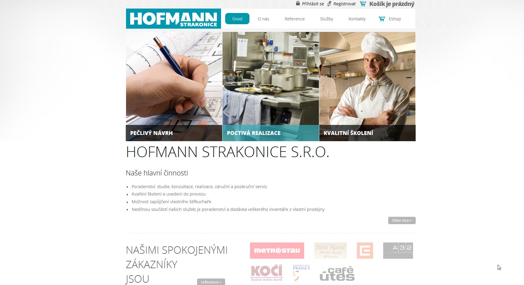 Pro společnost HOFMANN Strakonice s.r.o., která je jedním z největších dodavatelů gastro techniky a příslušenství, jsem vytvořili firemní webové stránky. Zadáním bylo vytvořit moderní webové stránky s důrazem na kvalitní UX návrh layoutu stránek a co nejjednodušší správu webového obsahu webu.