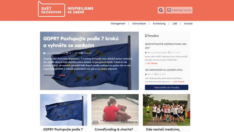 Vytvoření druhé prezentace pro neziskovou organizaci. Web splňuje trend současné doby - moderní současnou grafiku, optimalizaci pro mobilní zařízení (responsivní design) a je spravován pomocí CMS. Systém je postaven na Nette).Ve spolupráci s firmou ANDWEB s.r.o. Mojí prací bylo kódování šablon + responsivní design, programování dynamických modulů (backend, frontend).
